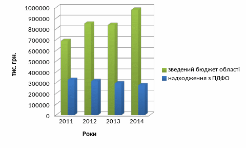 За звітній 2014 рік надходження від податку на доходи фізичних осіб становило 327 264,1 тис. грн., що на 12 120,5 тис. грн. більше ніж у 2013 році та на 32 969,5 тис. грн. – у 2012 році [13].