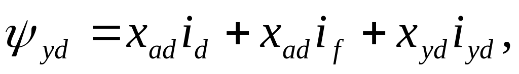 Уравнения для электромагнитного момента (2) и потокосцеплений (3) остаются без изменения. Необходимо подчеркнуть, что выражения для потокосцеплений (3) записаны через индуктивности и взаимоиндуктивности. В системе относительных единиц индуктивности и индуктивные сопротивления, рассчитанные для номинальной (базисной) частоты, выражаются одним и тем же числовым значением