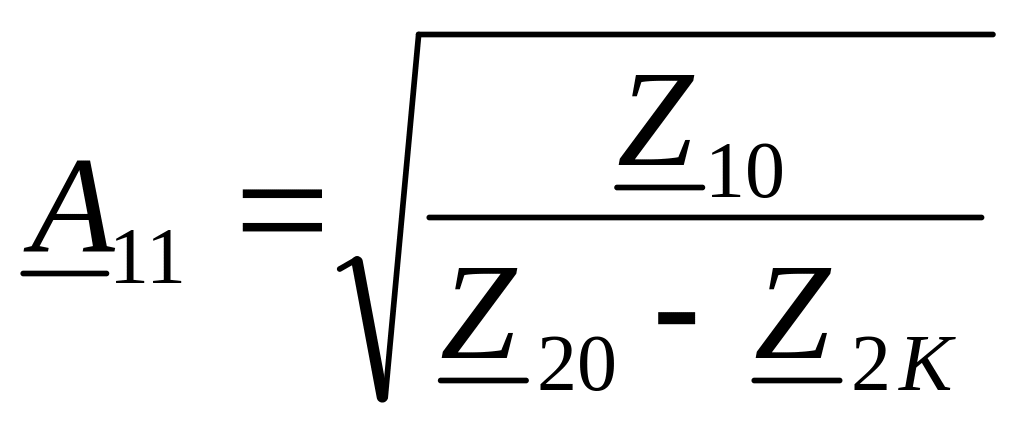 Знаходження коефіцієнтів чотириполюсника через опори неробочого ходу короткого замикання (використовується при визначенні коефіцієнтів послідовним шляхом)