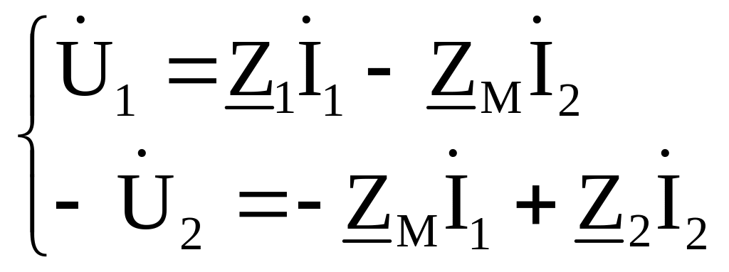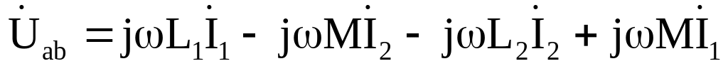 Струми вмикають в одноіменні затискачі, при узгодженому включенні. На Рис.10.4. початки обмоток котушок при узгодженому включенні позначені . Неузгоджене – в різноіменні затискачі, позначення – ().