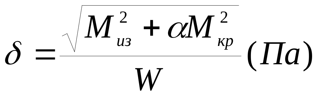 Сложное напряжение от изгиба и кручения определяется по формуле