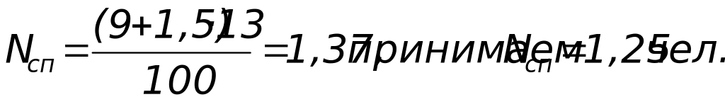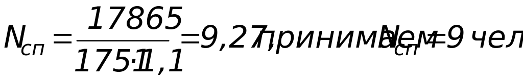 Состав вспомогательных рабочих Nвсп , чел., вычисляем согласно [10, с. 310] по формуле: