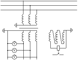В нормальном режиме вольтметры во вторичной обмотке показывают фазные напряжения. Напряжение в дополнительной обмотке реле равно нулю. При замыкании на обмотке реле напряжение: