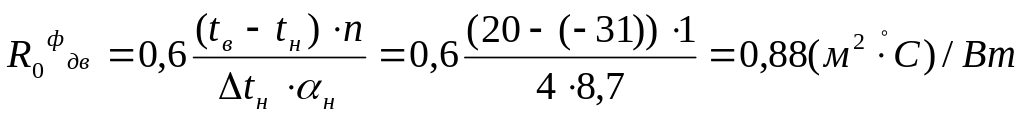 Определяем фактическое сопротивление теплопередаче наружной двери.
