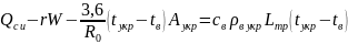 Фактическая температура воздуха в укрытии определяется из уравнения теплового баланса сушильного агрегата, размещенного в вентилируемом укрытии. Правая часть уравнения вычисляет расход теплоты на подогрев удаляемого из укрытия воздуха.