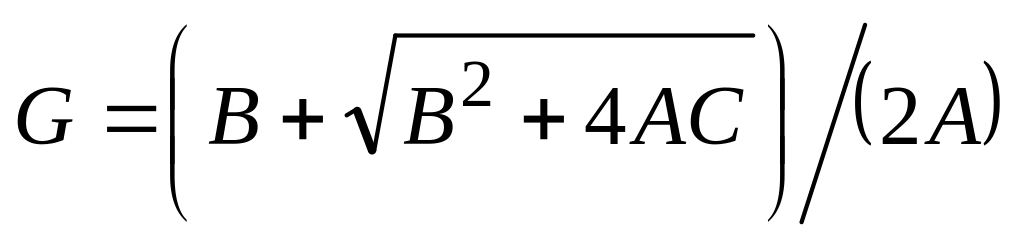 Группируя члены относительно степеней неизвестного параметра G получим квадратное уравнение: