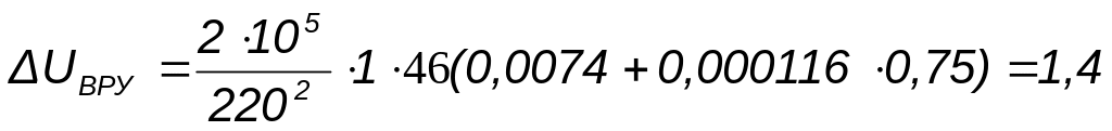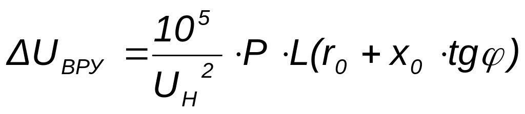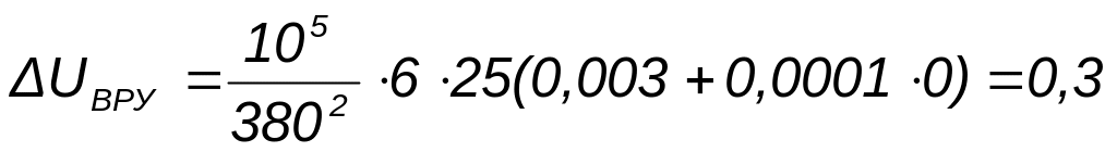 Определяем потерю напряжения в линии от ВРУ до самого удалённого электроприёмника (указать наименование электроприёмника) ΔU, %