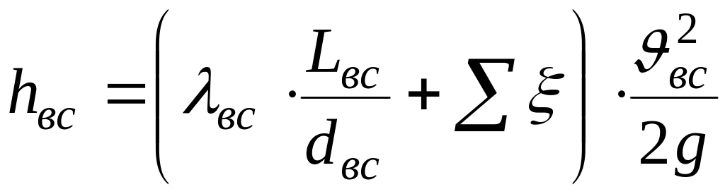 Lвс, dвс – довжина і діаметр всмоктувального трубопроводу, м,