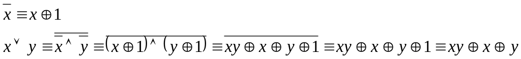 Чтобы записать полином Жегалкина для произвольной формулы алгебры логики нужно все входящие в нее операции заменить на сложение по модулю «два» и конъюнкцию, используя при этом равносильности: