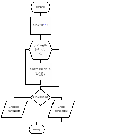 Program stroki1; var st,sl:string; k:integer; {функция определения палиндрома} FunctionPolindr(slo:string):boolean; var j:integer; slo2:string; begin slo2:=''; polindr:=true; for j:=length(slo) downto 1 do slo2:=slo2+slo[j]; {slo2-слово наоборот} if slo2<>slo then polindr:=false; end;