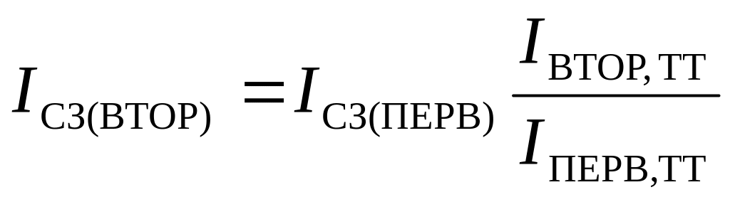 Если параметры срабатывания выставляются во вторичных величинах, то пересчет минимального тока осуществляется по следующему выражению:
