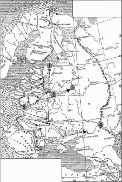 Какие суждения, относящиеся к событиям, обозначенным на карте, являются верными? Выберите три суждения из шести предложенных. Запишите в таблицу цифры, под которыми они указаны.