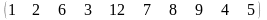 (1, 2, 3, 4, 5, 6, 7, 8, 9,12) |