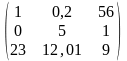 Дана матрица A(4, 4) = ((54, 16, 96, 36), (10, –4, 23, 13), (74, 54, 24, –2), (94, –9, –6, 28)). Получить новую матрицу путем умножения максимального элемента из текущей на единичную матрицу |