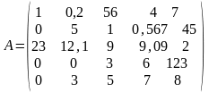 Найти отношение максимального к минимальному по модулю элементу матрицы А = |