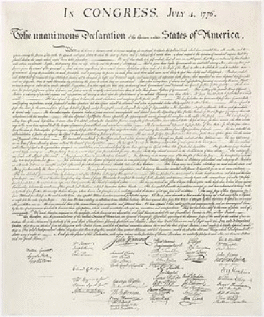 По предложению, сделанному в конгрессе делегатами Виргинии, ставшей во главе всего движения, было решено выработать декларацию независимости. Для этой цели была составлена комиссия из Джефферсона, Франклина, Дж. Адамса и др. Декларация независимости была опубликована 4 июля 1776 г. От неё обыкновенно начинается отсчет времени американской независимости. В ней впервые колонии называются именем «Соединённыe Штаты Америки» и заявляется, что политическая связь между ними и Великобританией порвана окончательно.