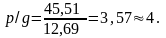 Значения коэффициента β при p/g=4 по табл. 1: