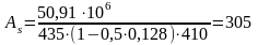 Принято 410А400 с Аs=314 мм2 (+2,9%).