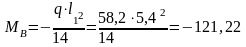 На средних опорах С: Мc = - М2= -106,07кН/м.
