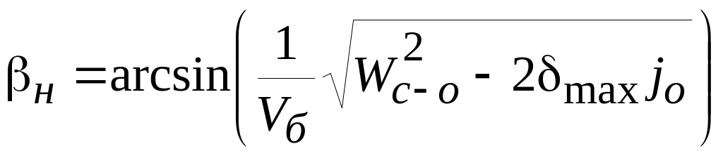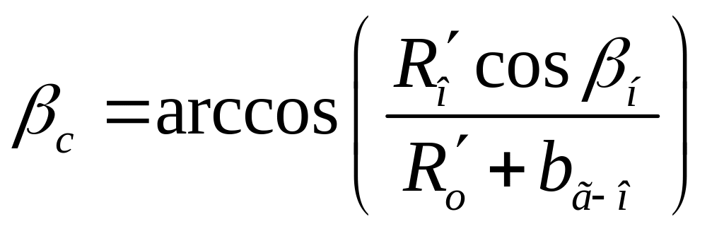 Значення стрілочного кута (див. рис.1.1) − кута між робочою гранню рамної рейки і дотичною, проведеною до робочої грані вістряка в центрі його обертання, − визначається за формулою