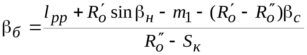 б − кут, який відповідає задньому стику рамної рейки, що веде на бокову колію. Для марок хрестовини 1/9 і пологіших та при умові, що , цей кут визначається за формулою