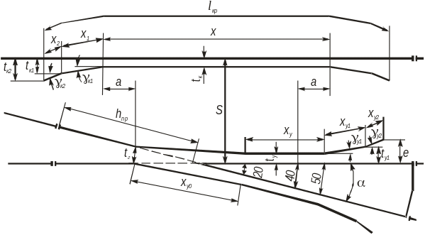 - •3 Визначення основних геометричних і осьових розмірів стрілочного переводу