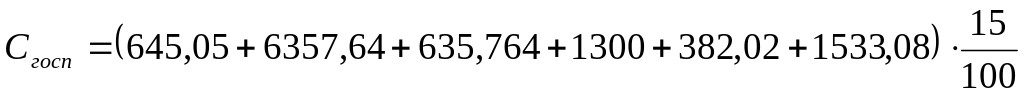 7. Загальногосподарські витрати визначаємо у відсотках від прямих витрат; приймаємо Вгосп = 15% :