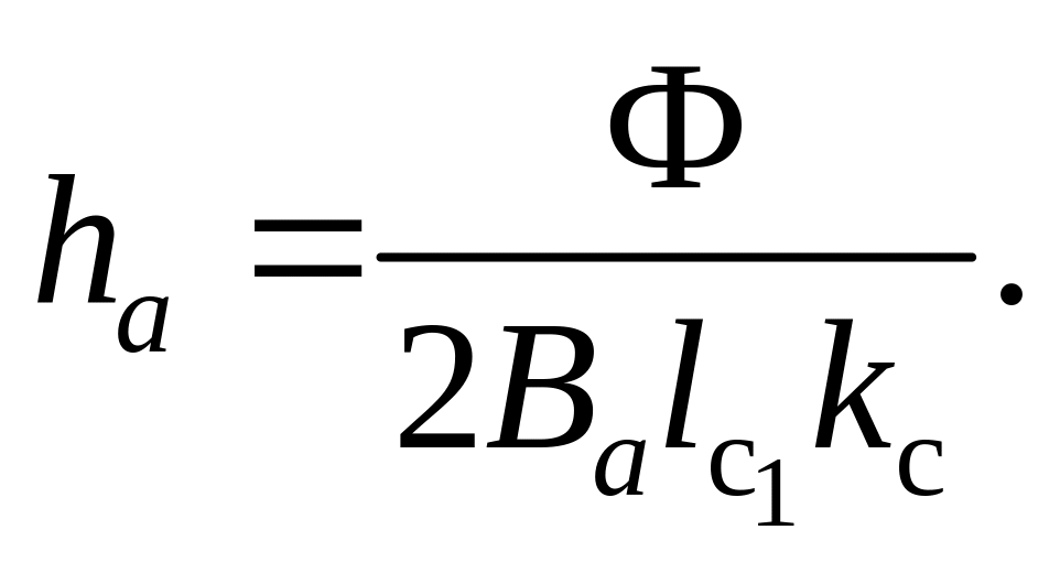 На этом выбор главных размеров заканчивается. В результате проделанных вычислений получены значения высоты оси вращения h, внутреннего диаметра статора D, внешнего диаметра статора Da, расчетной длины магнитопровода и полюсного деления .