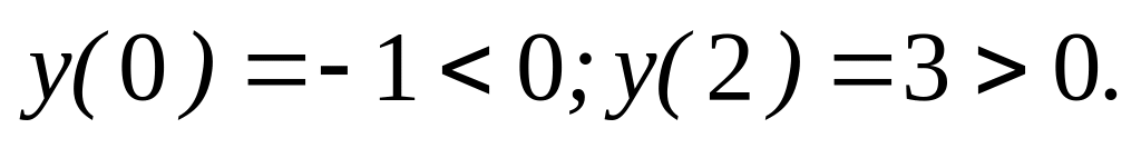 Знак функции в каждом из интервалов определяем методом частных значений: