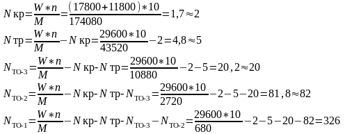 mi – количество ТО (ТР,ТО-3, ТО-2)