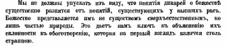 «Низшие расы едва ли представляют себе своих богов более сильными, чемъ они сами; эти боги злы, а не добры; их можно умилостивить жертвоприношениями, а не молитвами; они ничего не создали; они не всеведущи и невсемогущи; они не награждают за добро и не наказывают за зло; они не только не могут даровать человеку бессмертия, но и сами не всегда бессмертны.