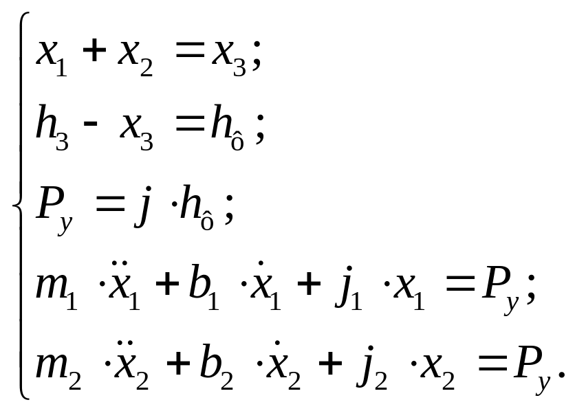 Осталось описать уравнениями движение масс и в мгновение, когда сила растет от ее среднего значения, т.е. в мгновение, которое рассматривалось при формировании функциональной схемы. Направления и величины действующих сил на массы и показаны на рис. 7.6.