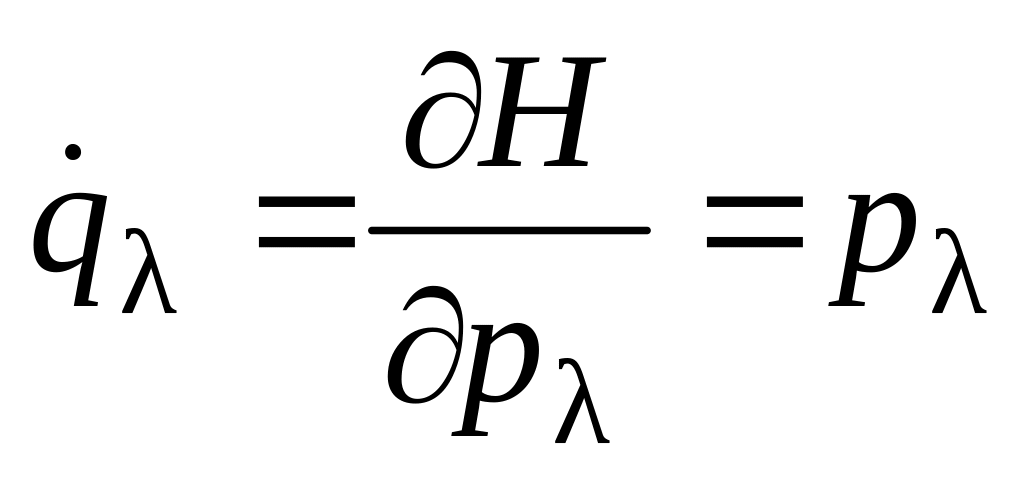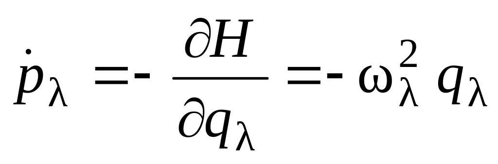 Точка над символами обобщенных координат и импульсов в левых частях формул (2.64) –– (2.65) обозначает дифференцирование по времени. Равенство (2.64) представляет собой уравнение движения гармонического осциллятора, а формула (2.65) является выражением для обобщенного импульса осциллятора с массой, равной единице.
