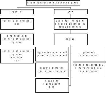 1. Задачи и методы патологоанатомической службы и её место в системе Здравоохранения Украины (приказ №81 от 12.05.1992 г МОЗ Украины «Про розвиток та удосконалення патологоанатомічної служби в Україні», приказ №417 от 19.08.2004 г МОЗ Украины «Про удосконалення дитячої патологоанатомічної служби», а также приказ №179 от 29.03.2006г. «Про затвердження Інструкції з визначення критеріїв перинатального періоду, живонародженості та мертвонародженості. Порядку реєстрації живонароджених і мертвонароджених»). Основные задачи патологоанатомического бюро, централизованного патологоанатомического отделения. Должностные требования к врачу патологоанатому и персоналу отделения. Оборудование и оснащение патологоанатомического отделения. Порядок вскрытия трупов в лечебно – профилактических учреждениях. Основная патологоанатомическая документация.