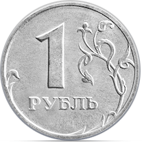 в нижней части диска, под орлом — буквенное обозначение номинала в одну строку: «ОДИН РУБЛЬ», подчеркнутое горизонтальной линией, разделенной посередине точкой;