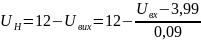 Знаючи вхідні наприги на кожній температурі можна обчислити RН за формулою: