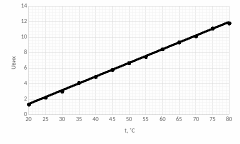 По данним з таблиці побудовано графік залежності Uвих від температури.