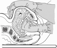 Другой рукой через переднюю брюшную стенку надавите на заднюю стенку матки по направлению к руке, введенной во влагалище.