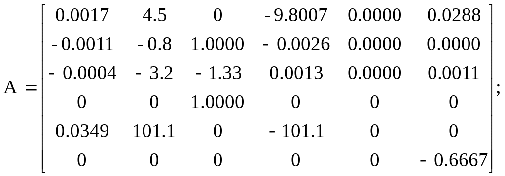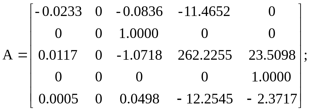 A = [-0.0233 0 -0.0836 -11.4652 0