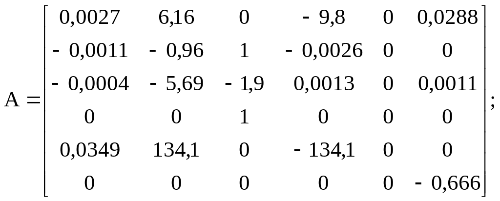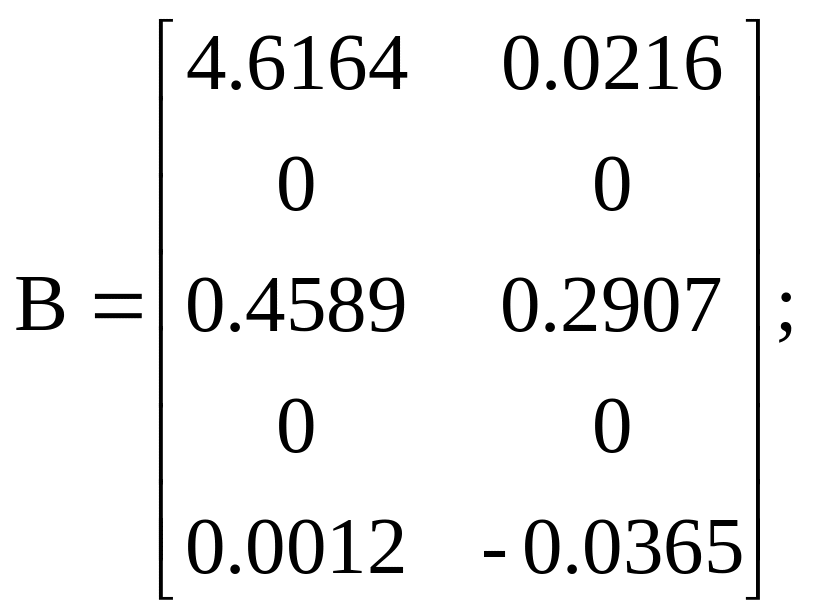 Оскільки розмірність системи збільшилась на 1 параметр (параметр виконавчого механізму), то слід розширити матрицю спостереження системи: