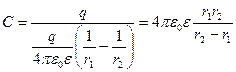 3. Сфералық конденсатордың сыйымдылығы (радиустары және екі концентрлі сфера).