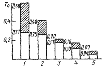 Рисунок 1.1 Частка участі основного металу в першому шарі наплавлення (хромонікелева аустенітна сталь), виконаного різними способами на звичайних режимах 1 - автоматична під флюсом; 2 - ручна дугова покритими електродами; 3 -автоматична під флюсом з додатковим присадним дротом; 4 - автоматична під флюсом стрічковим електродом; 5 - плазмовим струменем з струмопровідним дротом