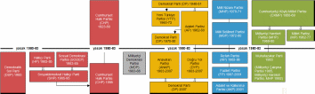 До начала восьмидесятых годов, когда к власти в Турции пришли военные, лидерами политической жизни страны были Партия справедливости и Народно-республиканская партия, основанная ещё Мустафой Кемалем. Однако республиканцы былиу власти лишь до 1999 года, благодаря коалиции с другими партиями и движениями. По результатам выборов 1999 года власть перешла к умеренной Демократической левой партии, выступавшей за национальное единство и осуждавшей поляризацию общества по социальному признаку.