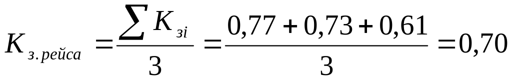 использования грузоподъемности (коэффициент загрузки) по формуле: