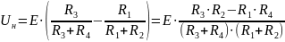Если известны значения всех четырёх сопротивлений, а также напряжение (Е), то напряжение на плечах моста можно найти, используя формулы делителя напряжения, а затем вычесть их друг из друга, чтобы найти UH: