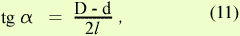 Если даны диаметры оснований конуса D и d и его длина l, то угол поворота линейки можно найти по формуле (11).