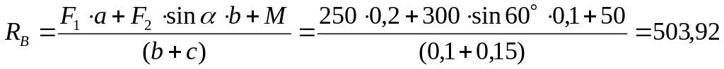 Сумма моментов сил относительно точки B: