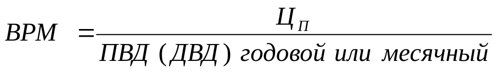 4. Мультипликатор валовых рентных платежей или валовый рентный множитель ВРМ –отношение цены покупки к валовому рентному доходу. В качестве знаменателя используют ПВД (до вычета потерь от недоиспользования), либо ДВД (за вычетом потерь от недоиспользования).