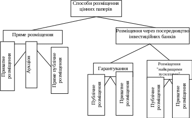 Одним із найскладніших рішень в емісійній діяльності є вибір методів розміщення цінних паперів. Схематично їх можна зобразити наступним чином: