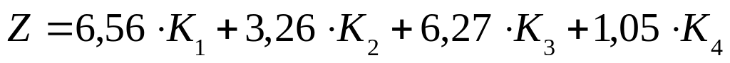 Індекс Альтмана є функцією від названих показників, які характеризують економічний потенціал підприємства та результати його роботи за минулий період. Загальний вигляд цього індексу (індексу кредитоспроможності) такий:
